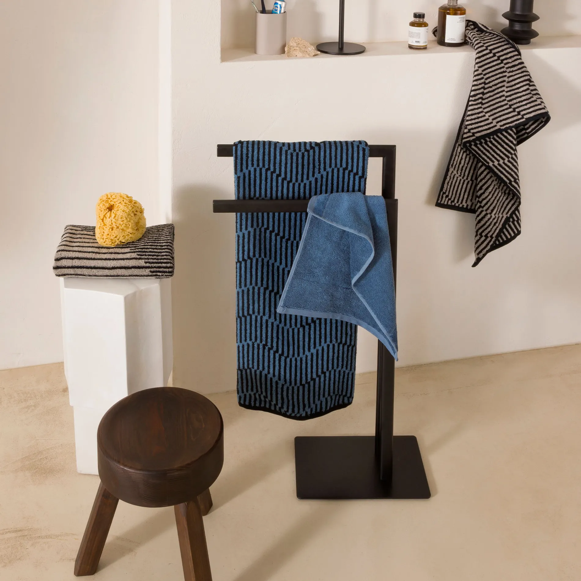 - Moderner Handtuchhalter mit zwei unterschiedlich hohen Armen