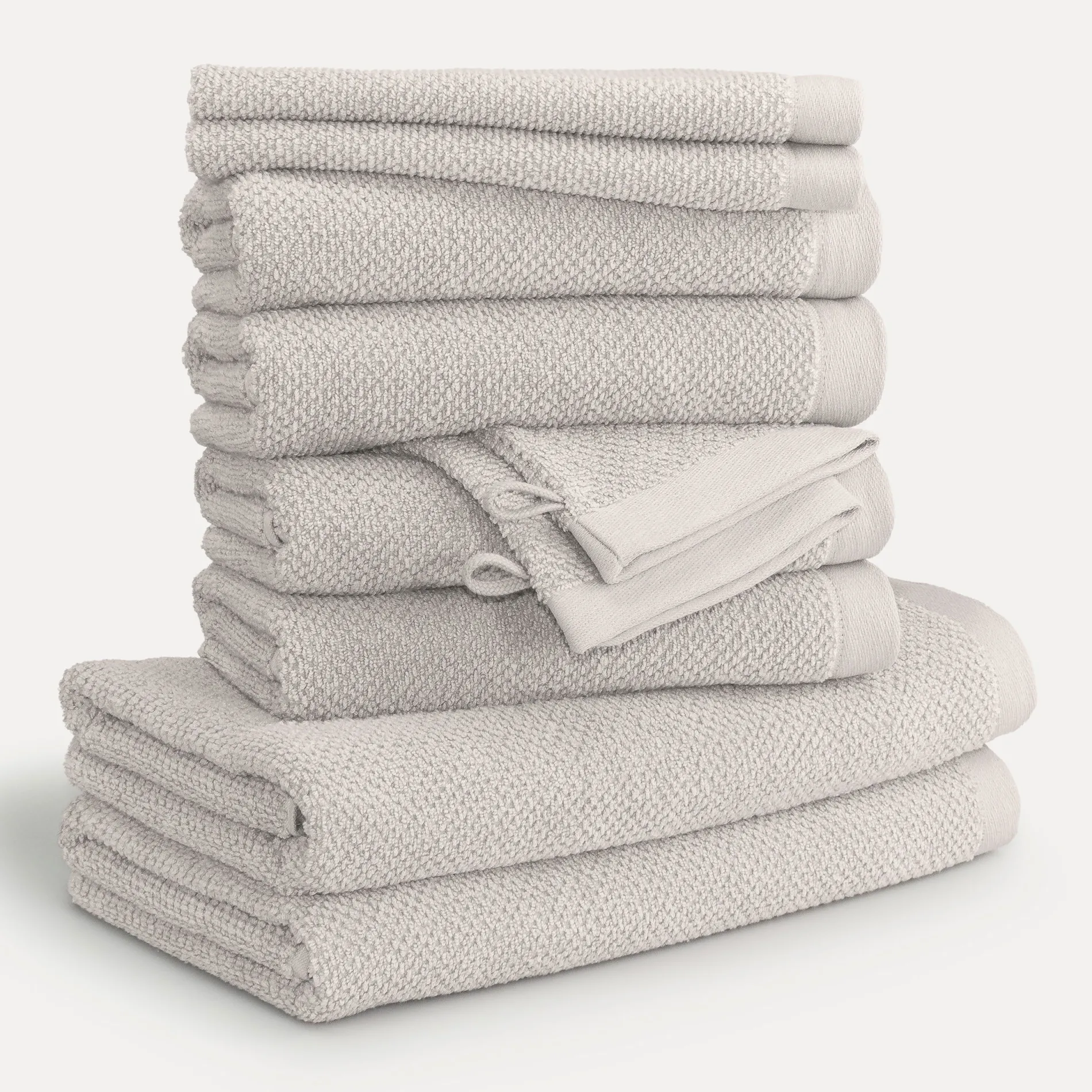 Das Set umfasst eine sorgfältig zusammengestellte Auswahl an 2x Waschhandschuhen, 2x Gäste-, 4x Hand- und 2x Duschtüchern – jeweils in harmonisch aufeinander abgestimmten Farben. Dank der hohen Saugfähigkeit und des angenehmen Gewichts liegen die Tücher weich und griffig in der Hand.