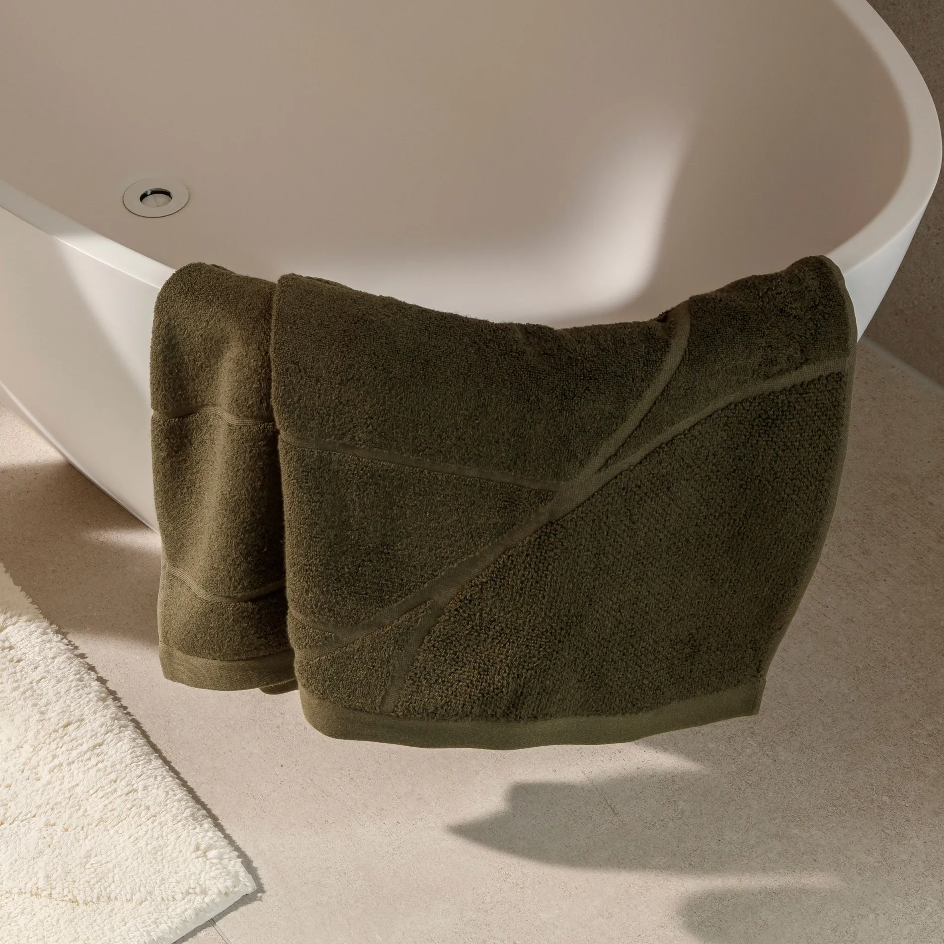 - Ergänzt von getufteter Badematte mit hohem Flor aus 100% Baumwolle