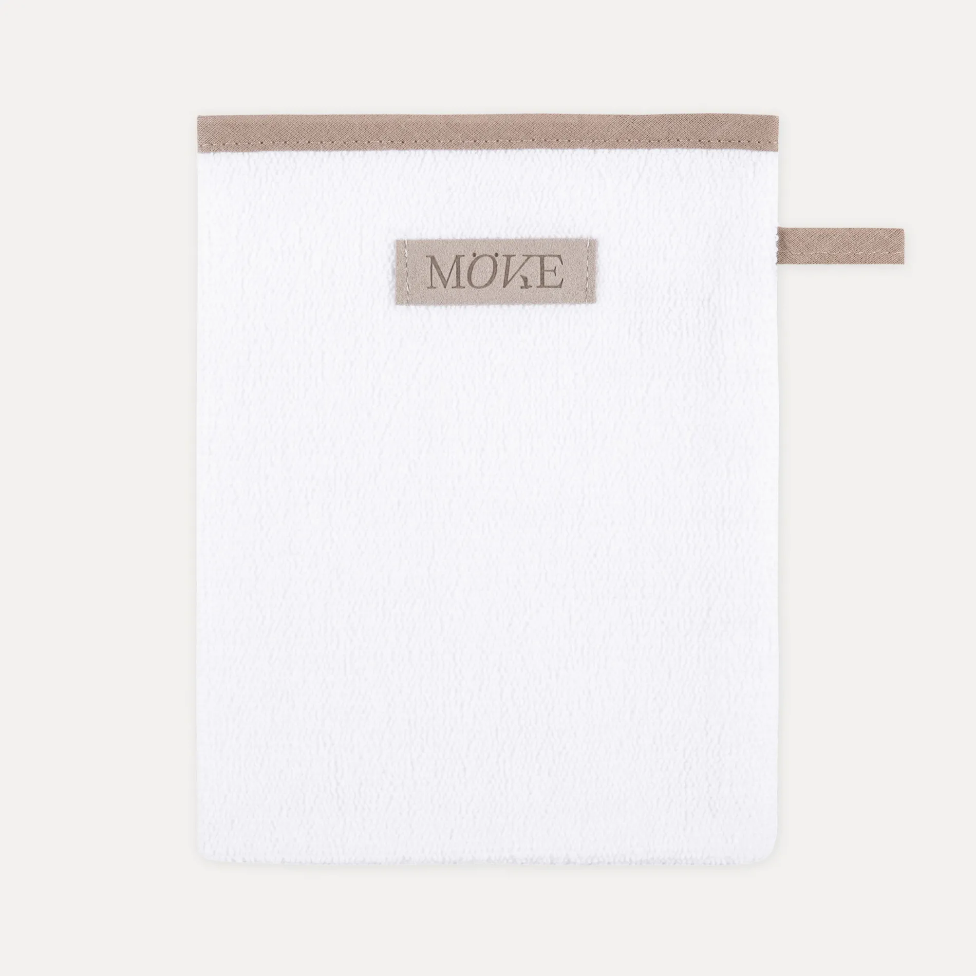 - Praktischer Waschhandschuh aus weißem Baumwollfrottier