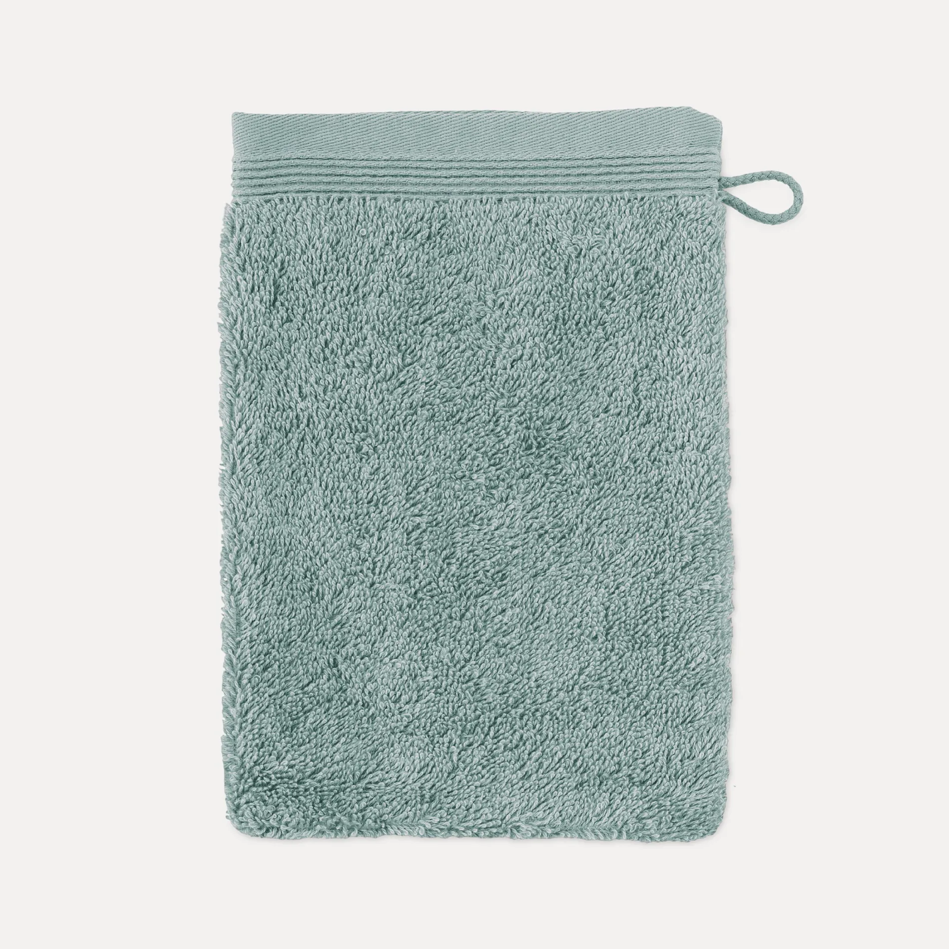 - Extraweicher und voluminöser Waschhandschuh mit dezenter Biesenbordüre