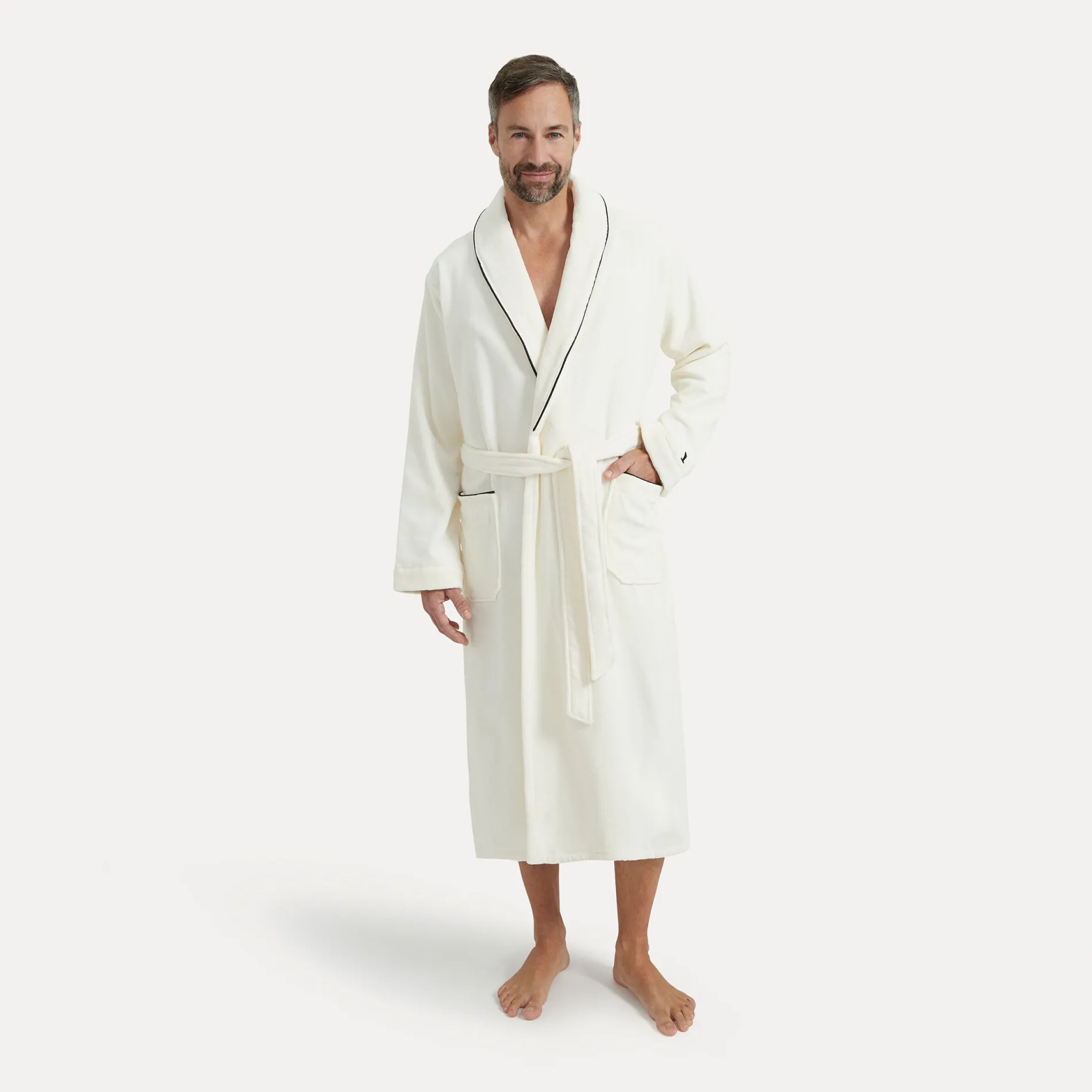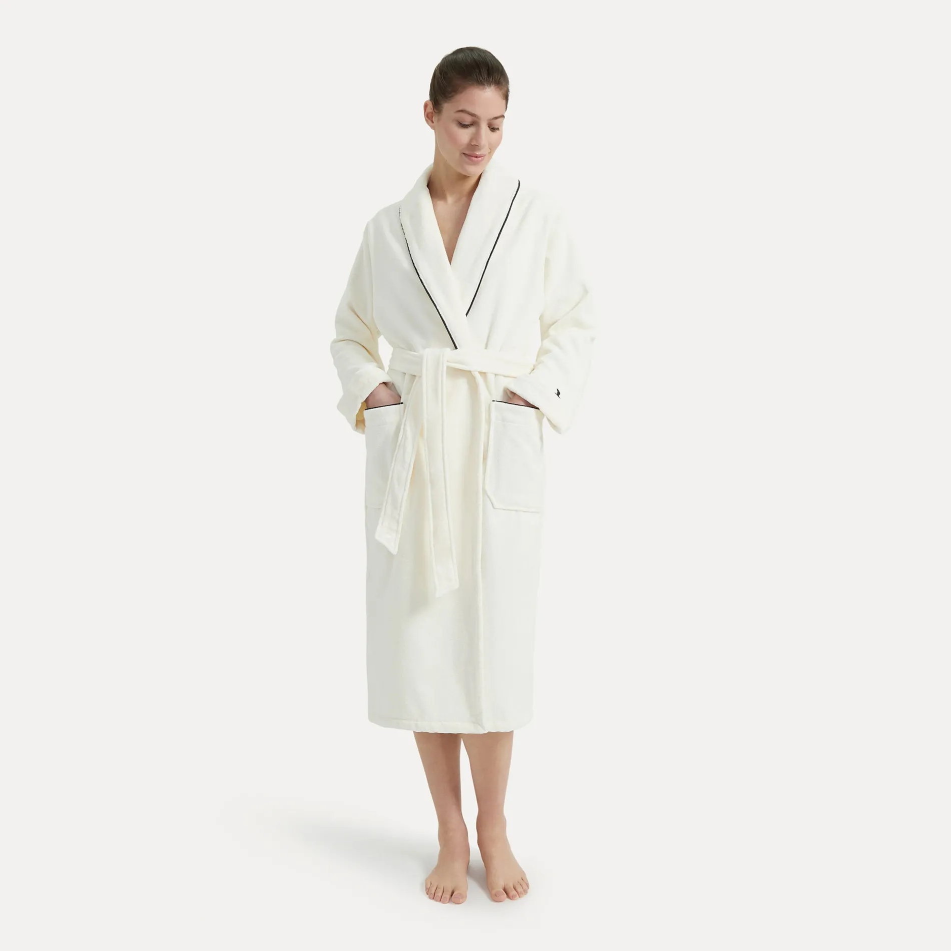 Bequem und gleichzeitig edel, das ist die Kollektion möve HOMEWEAR, zu der auch der flauschige Schalkragenmantel gehört. Dank des hochwertigen Baumwollvelours ist er kuschelweich und damit der ideale Begleiter bei kühlen Temperaturen – sei es nach dem Bad oder einfach für einen gemütlichen Start in den Tag. Der Bademantel mit Schalkragen ist in mehreren zeitlosen Farben erhältlich, die den eleganten Schnitt unterstreichen. Liebevolle Details sind die feinen Paspeln und das aufgestickte Markenlogo am Ärmel.