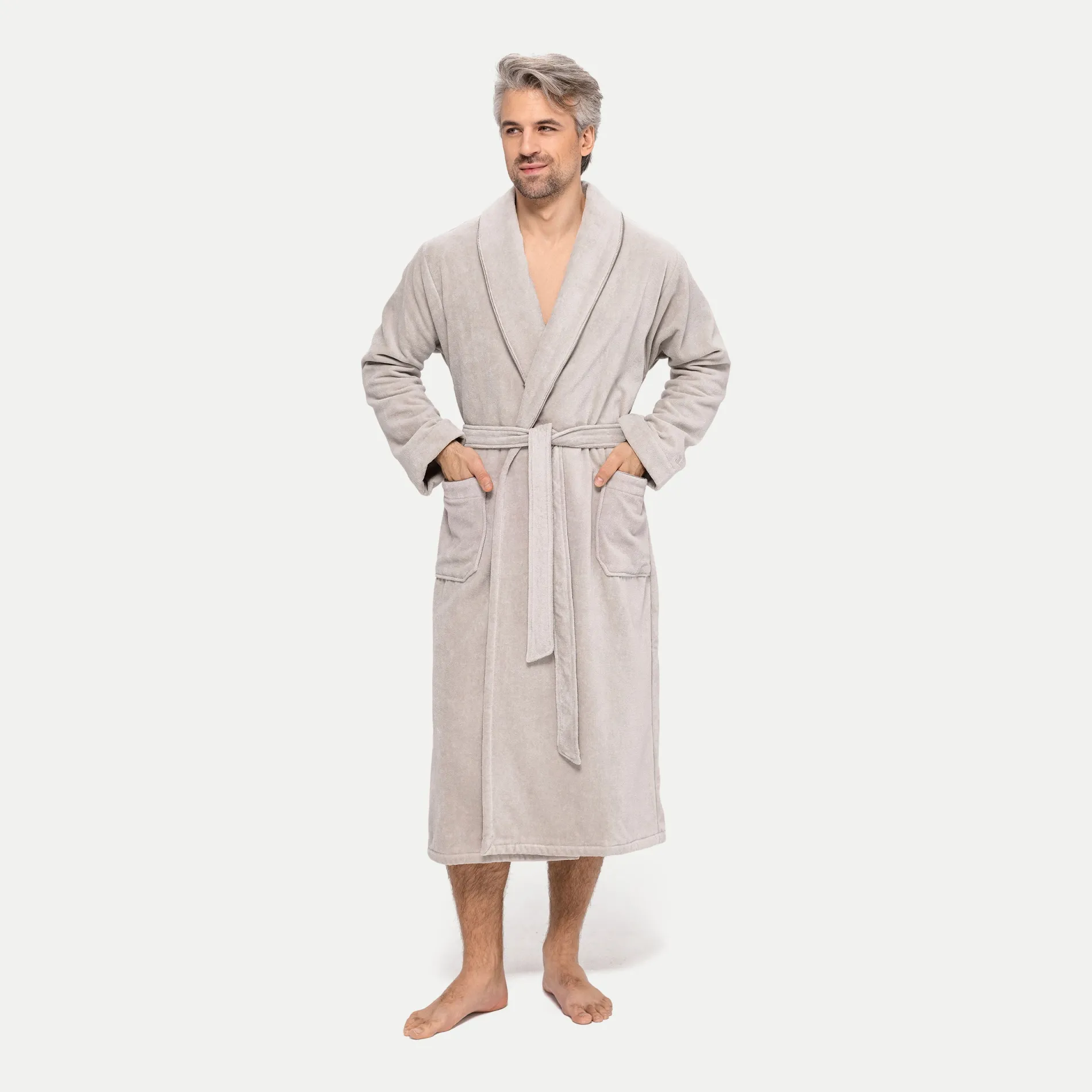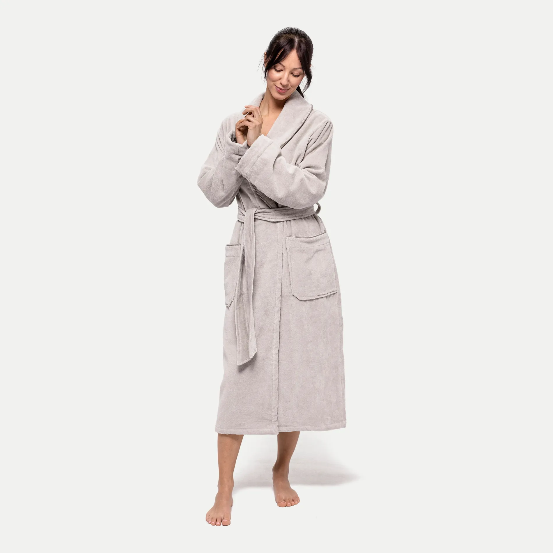 Bequem und gleichzeitig edel, das ist die Kollektion möve HOMEWEAR, zu der auch der flauschige Schalkragenmantel gehört. Dank des hochwertigen Baumwollvelours ist er kuschelweich und damit der ideale Begleiter bei kühlen Temperaturen – sei es nach dem Bad oder einfach für einen gemütlichen Start in den Tag. Der Bademantel mit Schalkragen ist in mehreren zeitlosen Farben erhältlich, die den eleganten Schnitt unterstreichen. Liebevolle Details sind die feinen Paspeln und das aufgestickte Markenlogo am Ärmel.