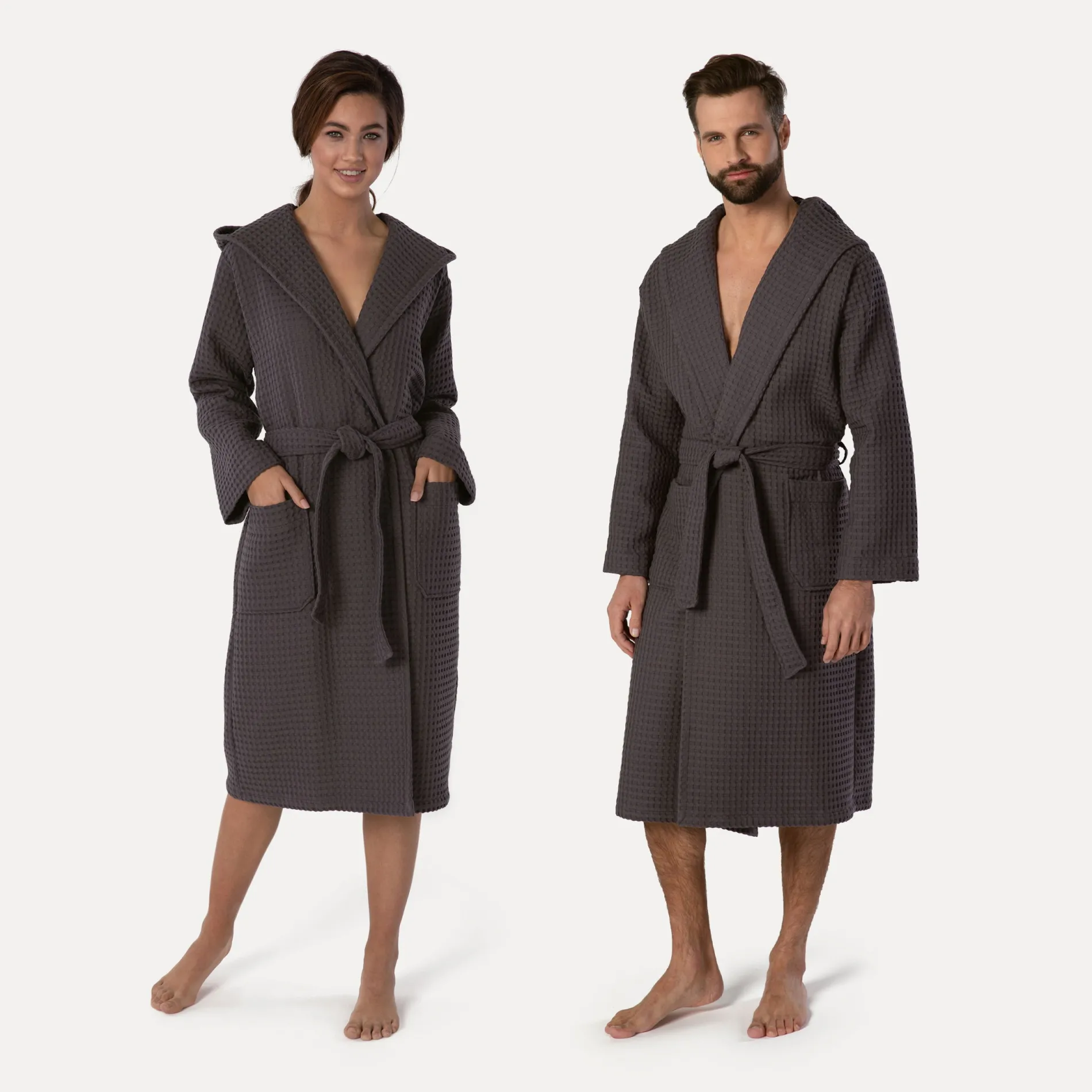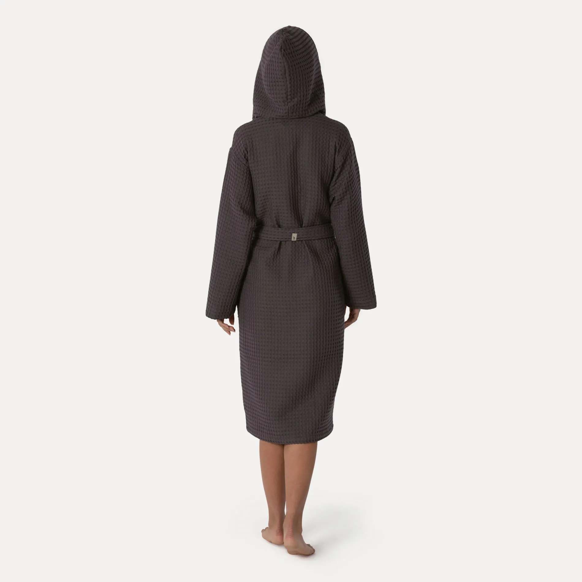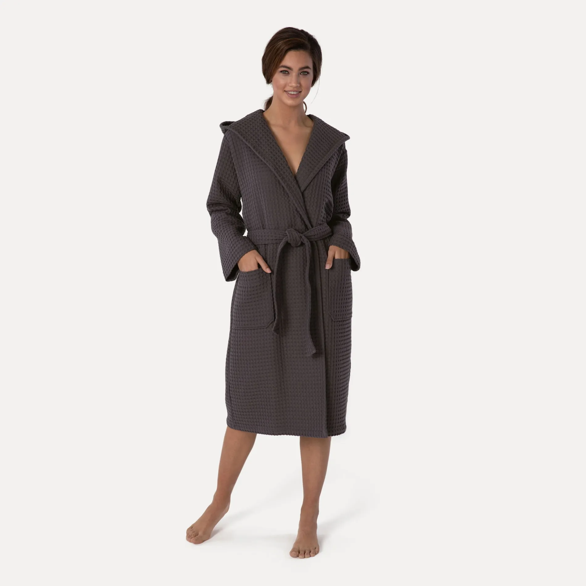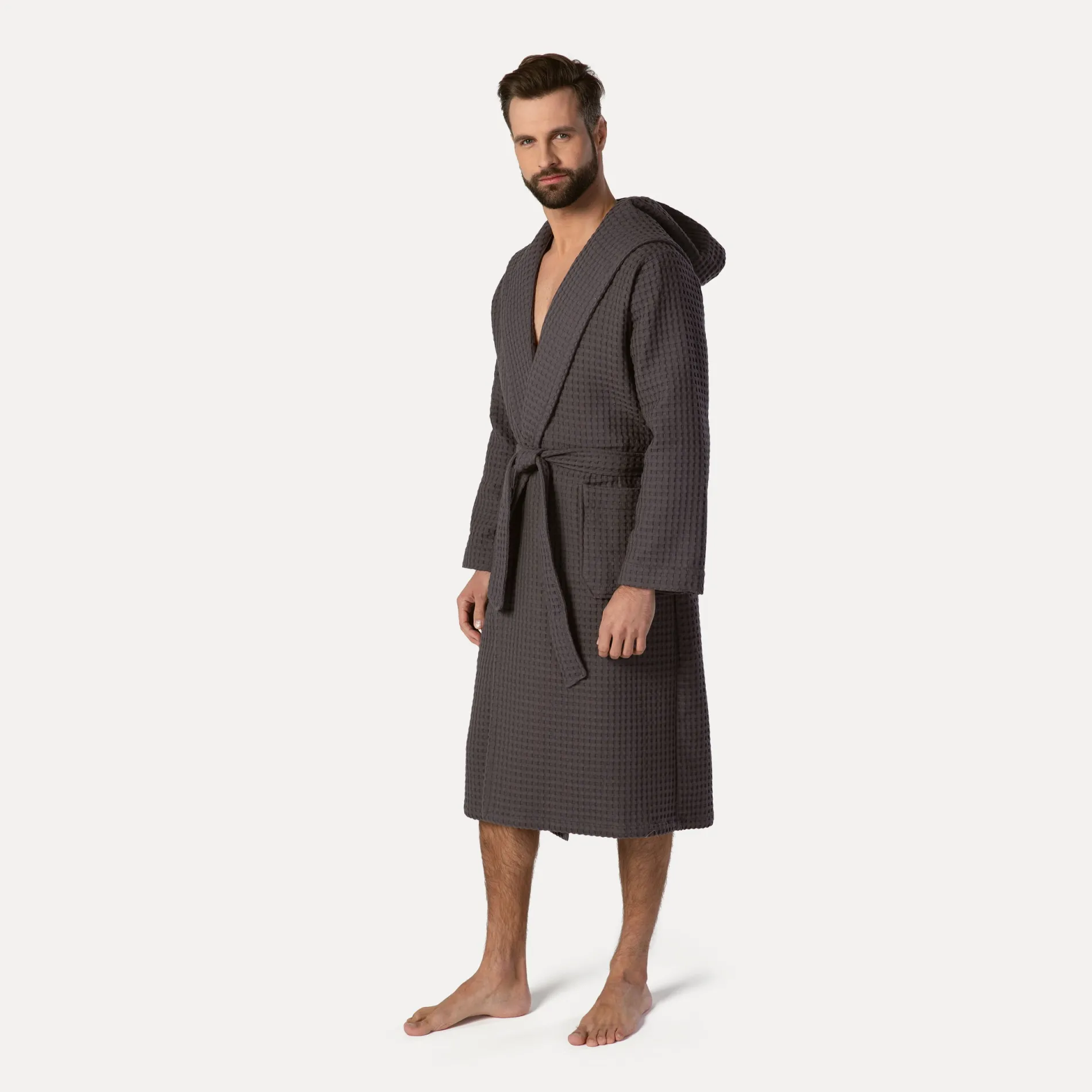 - Klassisch geschnittener Kapuzen-Bademantel mit strukturierter Waffelpiquée-Oberfläche