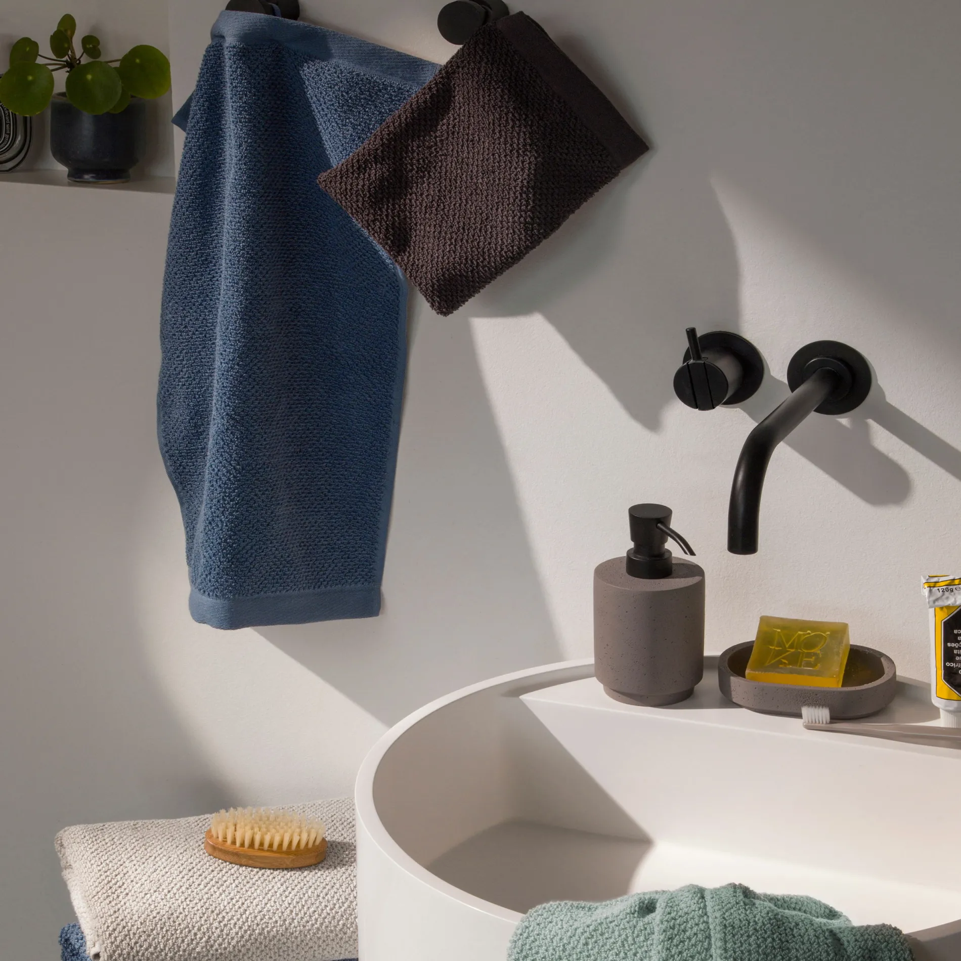Eine markante Perlstruktur, begeisternde Farben und ein moderner breiter Saum: Die Classics Kollektion MÖVE BLISS weckt wahre Glücksgefühle. Die weichen Handtücher (50 x 100 cm) mit leichtem Massageeffekt sind in acht Farben erhältlich und lassen sich untereinander perfekt kombinieren. Die strapazierfähige Baumwolle macht sie pflegeleicht und langlebig, ideal für den täglichen Einsatz in Ihrem Badezimmer. Für weitere schöne Wohlfühlmomente ergänzt eine Duschvorlage die Kollektion.