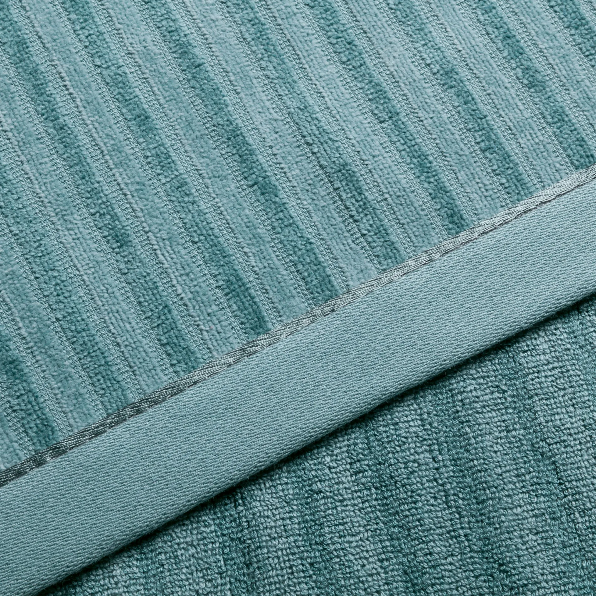 Die Handtücher aus Baumwolle sowie aus Bambus gewonnener Viskose haben eine unglaublich weiche Haptik und schimmern edel. Das monochrome Spiel der Strukturen verleiht Eleganz.