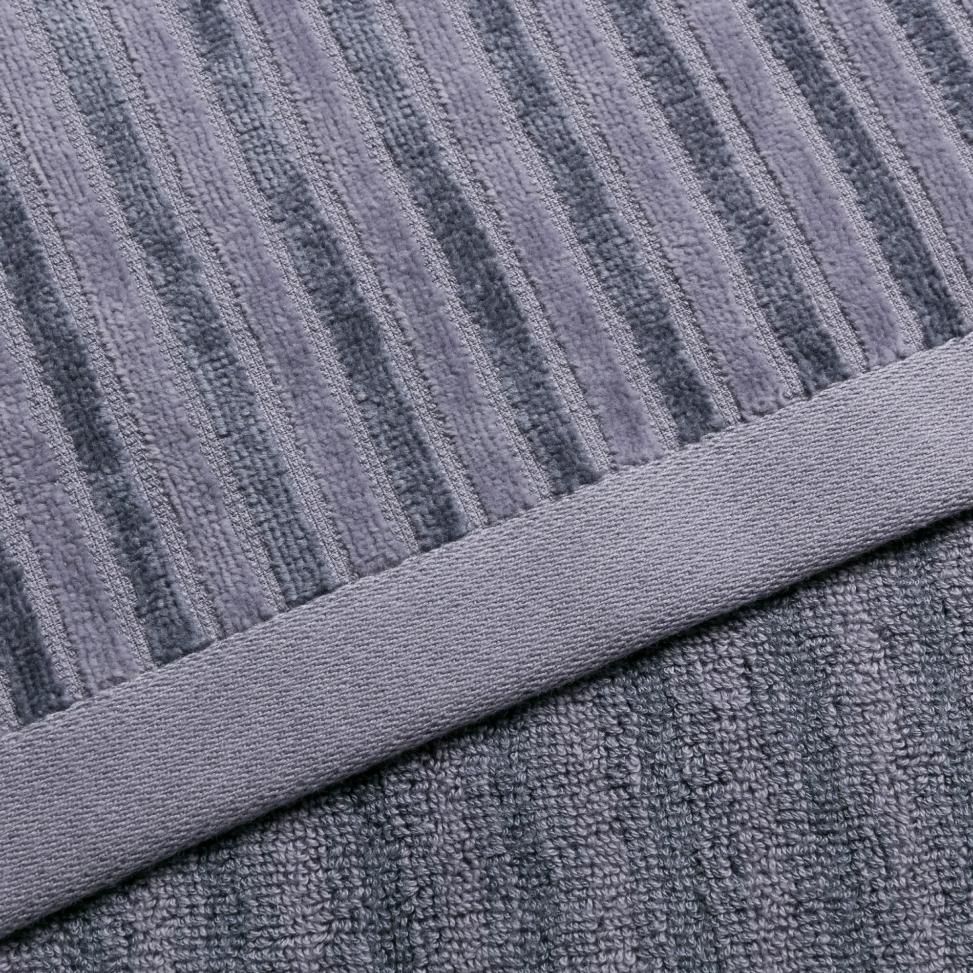 Die Handtücher aus Baumwolle sowie aus Bambus gewonnener Viskose haben eine unglaublich weiche Haptik und schimmern edel. Das monochrome Spiel der Strukturen verleiht Eleganz.