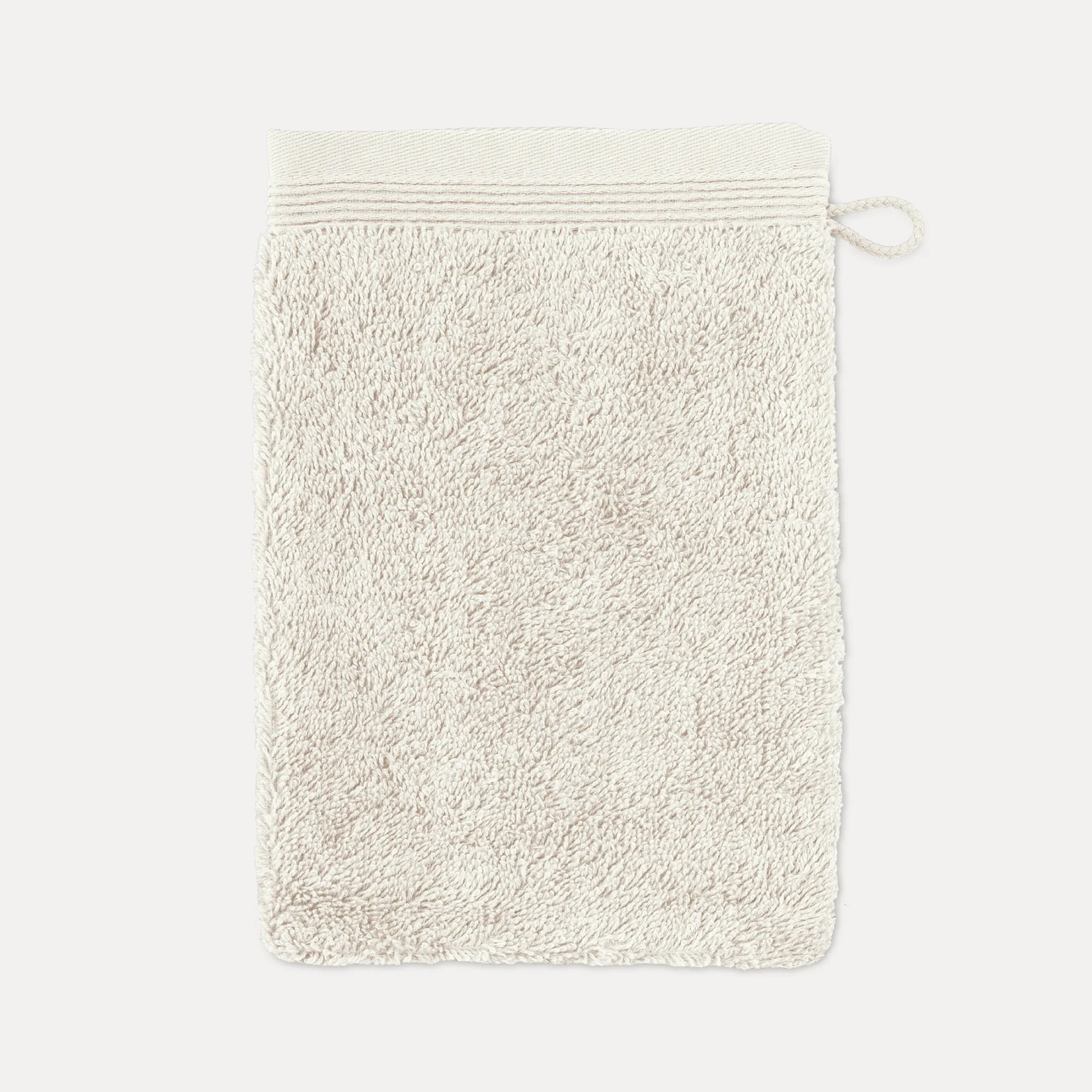 - Extraweicher und voluminöser Waschhandschuh mit dezenter Biesenbordüre